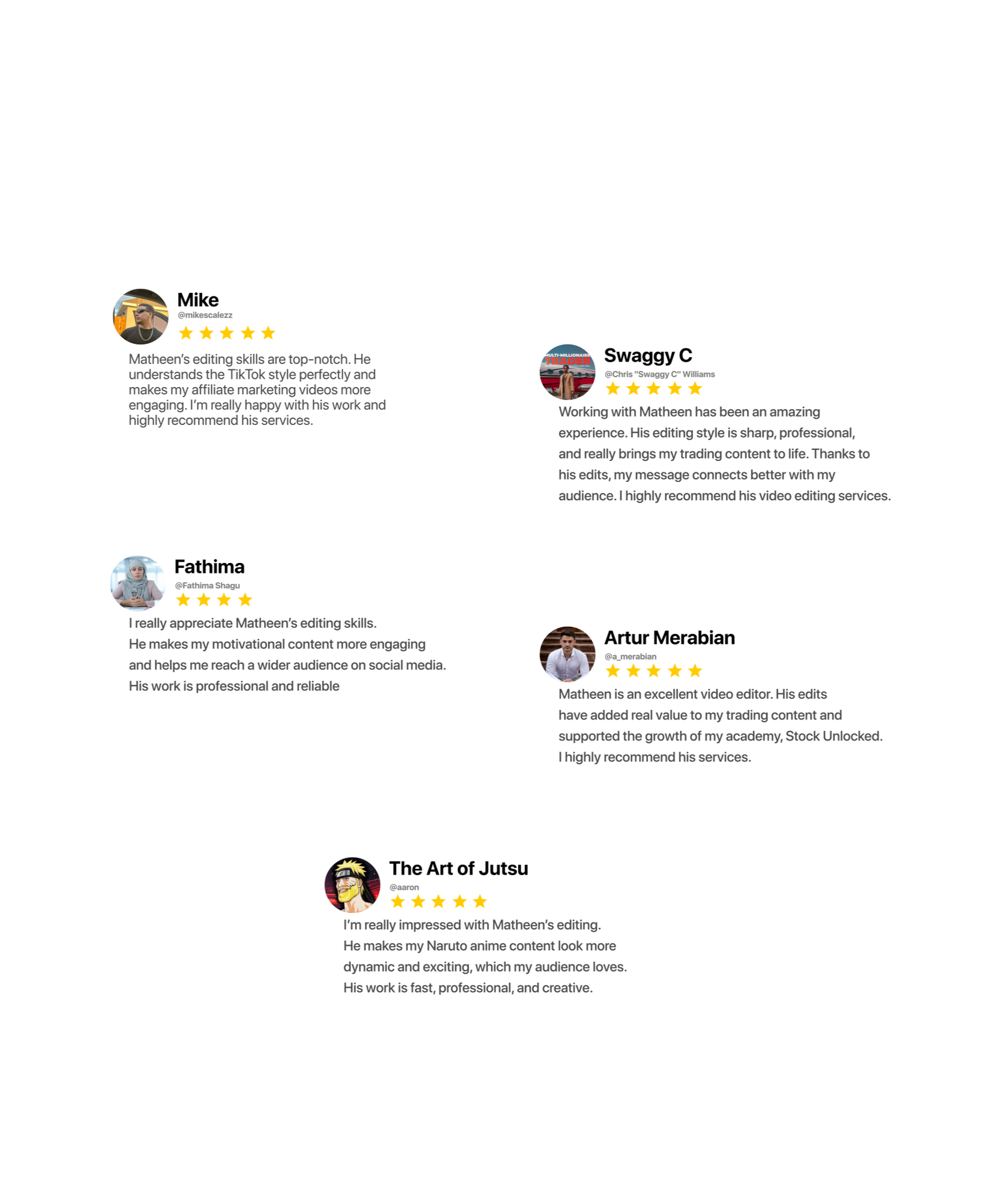 a video editor from India. I create compelling visuals across documentaries, corporate videos, and music videos, from HD to 4K. I combine creativity, precision, and the latest editing trends to deliver polished, impactful results. At Matvix Studio, every project reflects my commitment to quality and my philosophy: “Edit. Create. Inspire.”